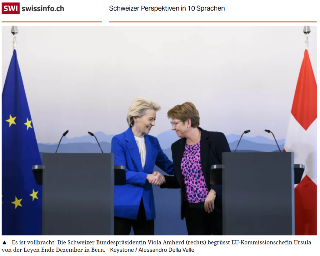 Der Bundesrat hat die Verhandlungen mit der Europäischen Union abgeschlossen. Gut so, die SGA gratuliert. Noch nicht ausgehandelt sind hingegen die innenpolitischen Begleitmassnahmen. Das ist bedauerlich, denn diese werden letztlich entscheiden, ob eine Mehrheit für das Vertragspaket gewonnen und so der bilaterale Weg weitergeführt werden kann. Der Abschluss der Verhandlungen zwischen Bern und Brüssel ist aber zweifellos ein wichtiger Schritt hin zur Stabilisierung und Weiterentwicklung der Beziehungen der Schweiz zur Europäischen Union. Das stimmt optimistisch!